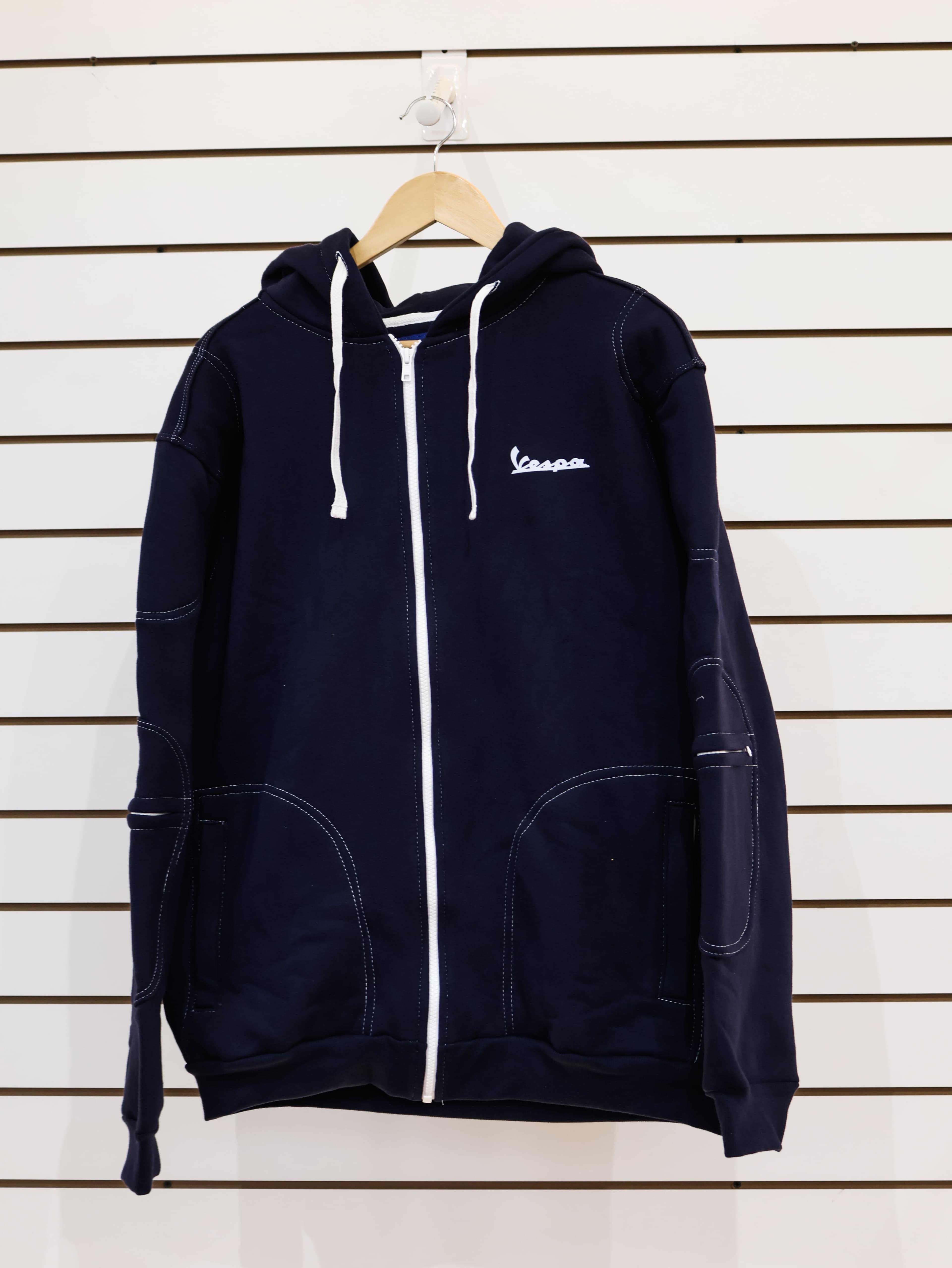 Campera Azul Oscuro Vespa – Casual con Toque de Protección Un diseño casual con la capacidad de adaptarse a lo que necesitas. Esta campera azul oscuro de algodón cuenta con detalles en blanco que la hacen destacar, como las costuras visibles y el logo pequeño en el pecho. Lo mejor: viene con la opción de agregar protecciones ocultas en los codos y hombros, ofreciendo seguridad sin sacrificar el estilo. Ideal para los que buscan comodidad, diseño y protección en cada aventura. 🛵✨ ~PRENDA OFICIAL VESPA~