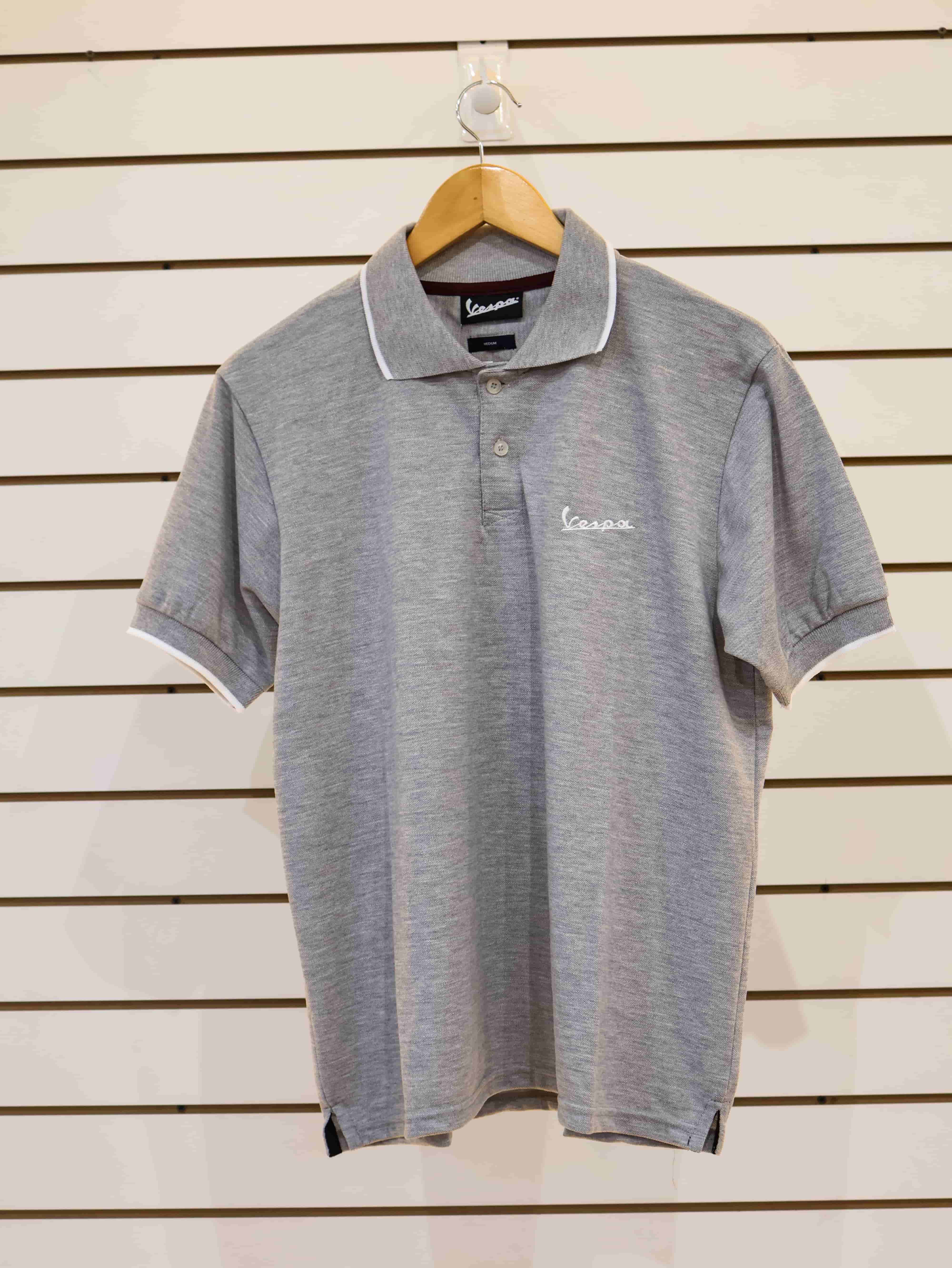Chomba Gris Vespa – Estilo Sutil, Impacto Seguro Un diseño que nunca pasa desapercibido. Esta chomba gris clarito, con el logo Vespa en el pecho y la silueta discreta en la espalda, ofrece una estética limpia y elegante. Los detalles en blanco en las extremidades le dan un toque moderno y fresco, ideal para quienes buscan comodidad sin sacrificar el estilo. 🛵✨ ~PRENDA OFICIAL VESPA~